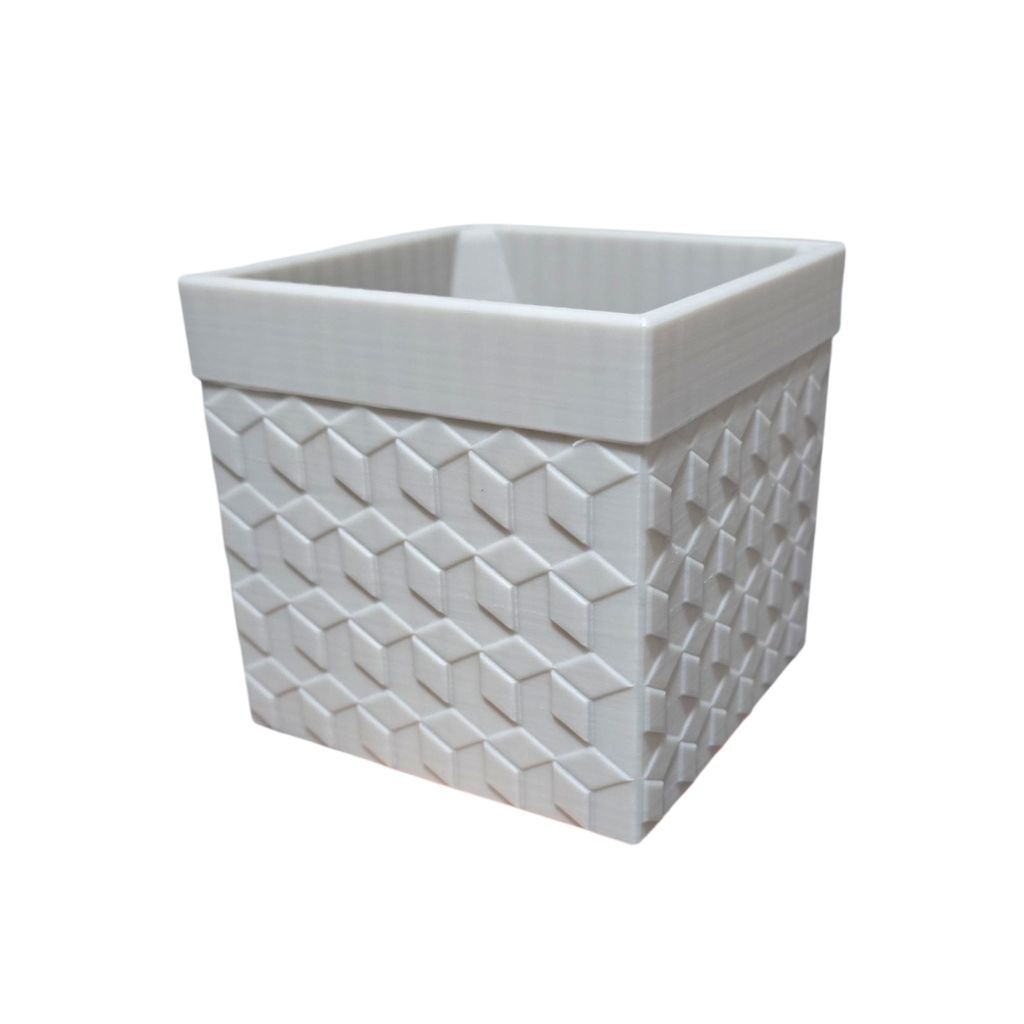 Add a modern touch to your home with this uniquely designed, 3D printed planter, crafted in-house from high-quality, eco-friendly PLA. Measuring 11cm x 11cm x 11cm.