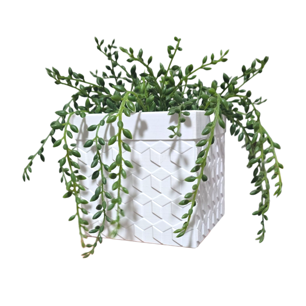 Add a modern touch to your home with this uniquely designed, 3D printed planter, crafted in-house from high-quality, eco-friendly PLA. Measuring 11cm x 11cm x 11cm.