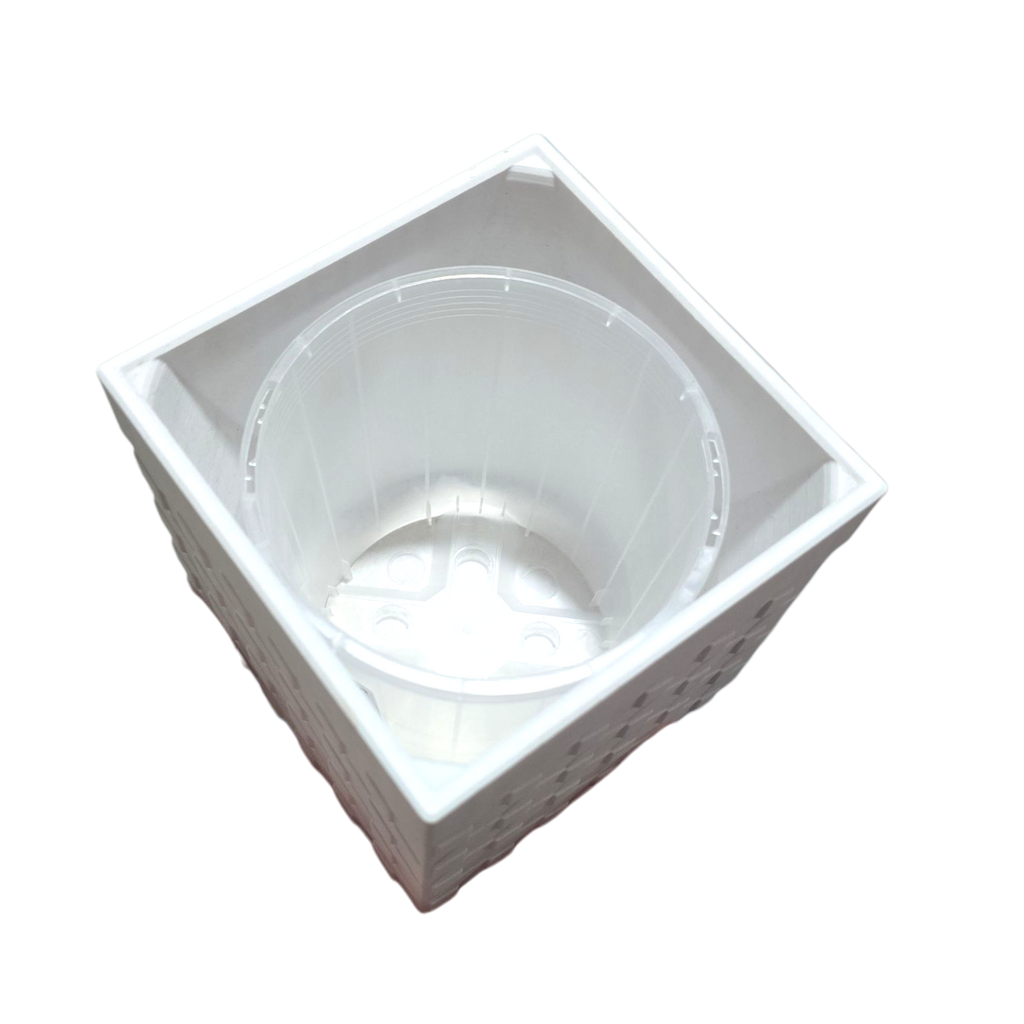 Each planter includes a 100mm insert pot (clear or black, depending on availability), allowing you to easily lift your plant out for watering — no more leaks or mess on your counters or shelves!